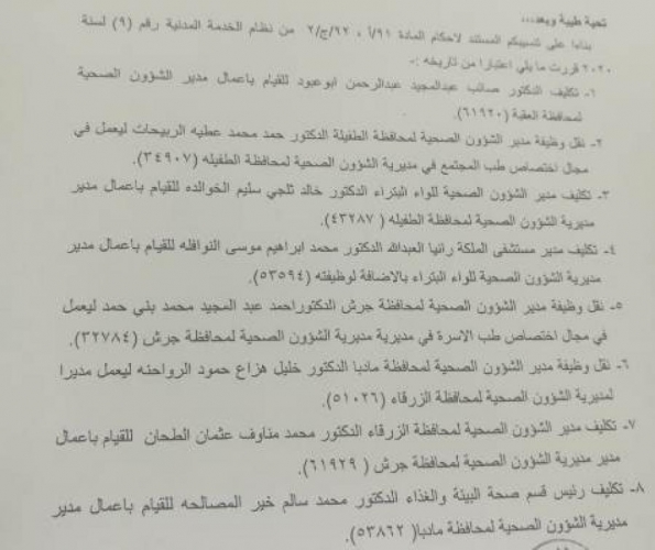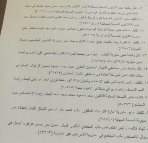 تنقلات واسعة في وزارة الصحة بمختلف المحافظات .. أسماء