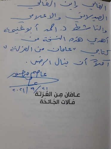 أكرمني الاخ والصديق د. عاصم منصور بهذا الإهداء الرقيق والمُفعم بروح المحبة والأخوة التي تجمعنا؛ مستذكرا بكل حُب وتقدير روح الوالد رحمه الله.