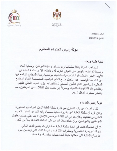 وأكد الرياطي في مذكرة وجهها للخصاونة  على واجب الدولة بكافة سلطاتها ومؤسساتها رعاية المواطن، وحماية آمنه، وصيانة كرامته، وتوفير سبل العيش الكريم له ولأبنائه، مشيراً إلى أن سلطة العقبة في الأونة الأخيرة اتخذت قرارات وسياسات تجاه موظفيها وتجاه المجتمع تتراجع فيها عن اداء هذا الواجب، عبر تأجيل طرح المنح الجامعية المخصصة لأبناء المجتمع المحلي، إلى تغيير نظام التأمين الصحي لموظفيها بما يزيد العبء المالي عليهم، ويفقدهم حقوقاً قانونية مكتسبة، وصولاً إلى خصم بدل التنقلات عن الموظفين، مما يخفض مستوى الدخل لديهم.