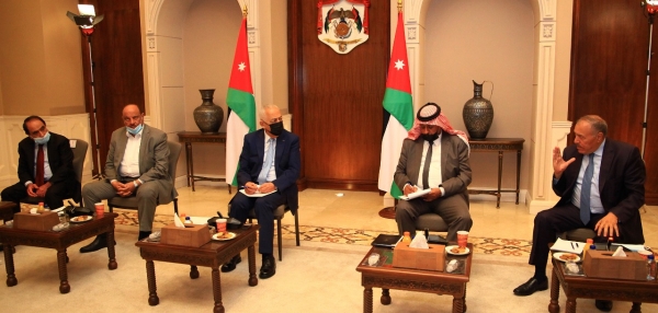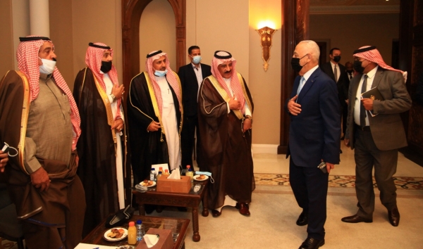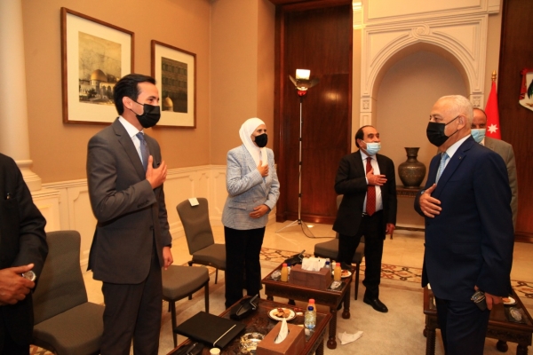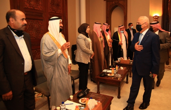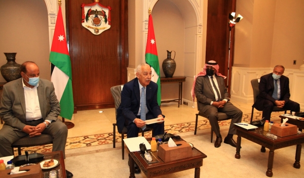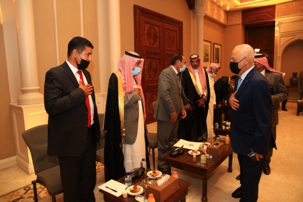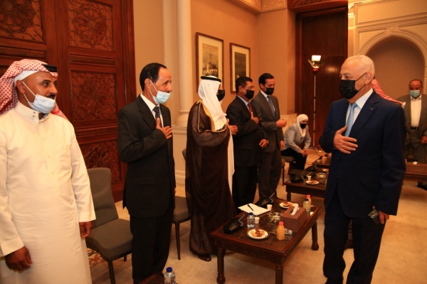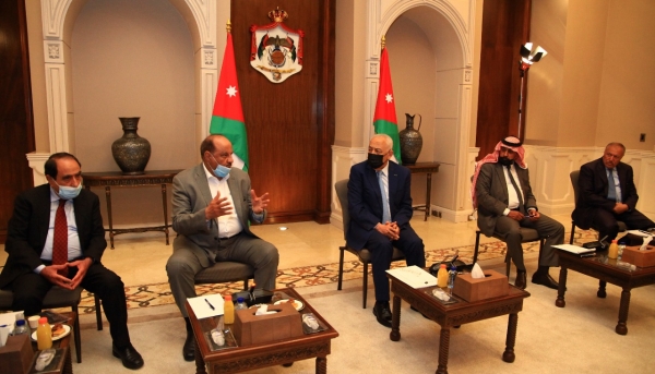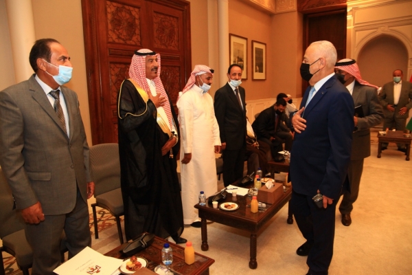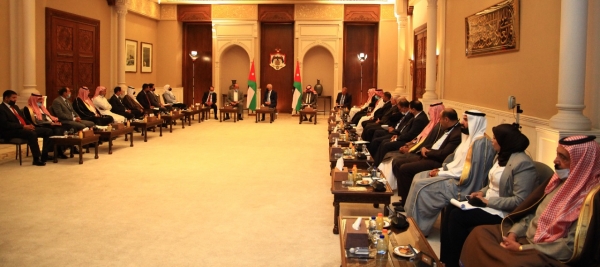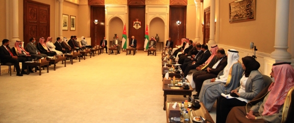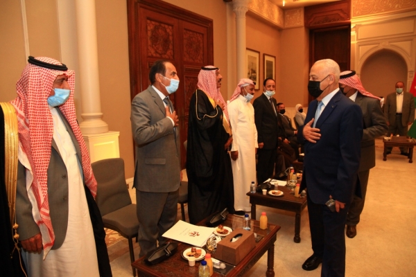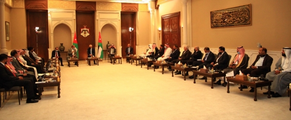 التقى يوسف العيسوي رئيس الديوان الملكي الهاشمي و معالي مستشار جلالة الملك لشؤون العشائر شيوخ ووجهاء الباديه ( المجموعه الاولى )في الديوان الملكي الهاشمي .