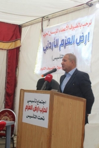عقد حزب " ارض العزم" تحت التأسيس جلسة حوارية مساء امس الأحد ناقش خلالها عددا من الموضوعات المتعلقة بالنظام الداخلي وأهدافه ومرتكزاته. وتدارس المجتمعون خلال الجلسة التي عقدت في منزل احمد البدادوة احد ابرز مؤسسي الحزب القوانين المنبثقة عن اللجنة الملكية لتحديث المنظومة السياسية.