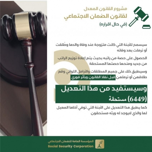 كما سيطبق هذا التعديل على الإبنة التي توفي أخاها المعيل لها والذي لا يوجد له ورثة مستحقون.