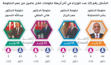 * 52 وزيرا للرزاز، و53 للملقي في عامين