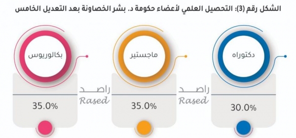 * 17 وزيراً يحملون الدرجات العليا، و9 وزراء يحملون درجة البكالوريوس