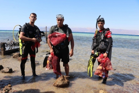 وتضمنت الحملة نظافة الشواطئ وجوف البحر وتوزيع منشورات توعوية وأكياس نفايات للمتنزهين على الشواطئ وزوار محافظة العقبة.
