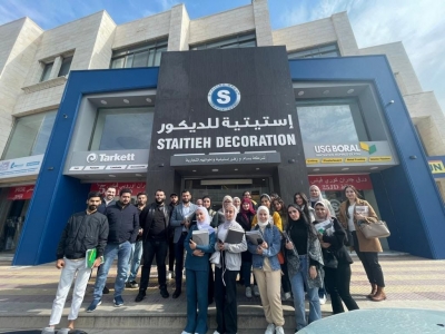نظم قسم التصميم الداخلي في كلية العمارة والتصميم/ جامعة عمّان الأهلية مؤخراً رحلة علمية إلى شركة استيتية للتصميم الداخلي في عمان، للاطلاع على آخر المستجدات في عالم الأرضيات والقواطع الداخلية