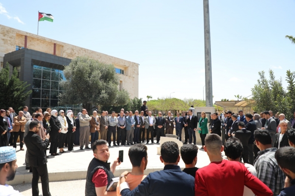 وفي هذا الصدد، قال نائب رئيس هيئة المديرين الدكتور أحمد ناصر الدين، بحضور رئيسة الجامعة الأستاذة الدكتورة سلام المحادين، وعميد شؤون الطلبة الدكتور أيمن الخزاعله، وعمداء الكليات، وأعضاء الهيئتين التدريسية والإدارية، ومدراء المراكز، وجمعٌ من الطلبة، إن العلم الأردني أكثر من مجرد رمز للوحدة الوطنية، فهو يمثل حالة الثراء في تاريخ البلاد، وثقافتها، وإنجازاتها، مضيفًا أن لألوانه معانٍ مهمة تعكس تراث الدولة، وتطلعاتها في الازدهار، والنمو، والتطور