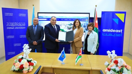 ووقع الاتفاقية عن جامعة الزرقاء رئيسها الأستاذ الدكتور نضال الرمحي، وعن أمديست لخدمات التعليم والتدريب المدير القـُطري الأستاذة نور الرشيد بحضور مدير وحدة التطوير وضمان الجودة في الجامعة الدكتور محمود عوده، ومديرة الاختبارات في أمديست فيرنند فاخوري.