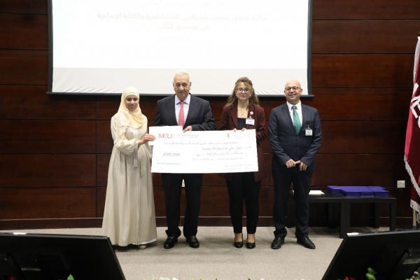 عمّان – قال رئيس مجلس أمناء جامعة الشرق الأوسط العين الدكتور يعقوب ناصرالدين، على هامش تكريمه الطلبة الفائزين في مسابقة "الدكتور يعقوب ناصر الدين للقراءة الحرة والكتابة الإبداعية”، إن مثل هذه المسابقات تعزز النمو الفكري، والكفاءة اللغوية للطلبة، وتجعلهم على ترابطٍ أقوى بثقافتهم وهويتهم.