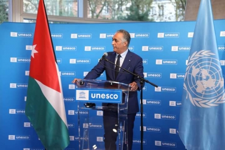 الوزير القيسي و ترافقه مديرة اليونسكو السيدة آودري ازولاي وبعد إلقاء كلمته التي أكد بها على العلاقة التاريخية بين الأردن ومنظمة اليونسكو والشراكة الاستراتيجية التي بنيت على الإيمان برسالة الإنسانية وحفظ التراث والثقافة و التعليم ومحاربة العنصرية والعمل يدا بيدا من أجل القضايا الجوهرية للأردن كالحفاظ على القدس والعمل الدؤوب والدعم التي قدمته اليونسكو لملفات الأردن لوضع ستة مواقع على لائحة التراث العالمي كالبترا وأم الرصاص ووادي رم والمغطس وقصير عمرة و مدينة السلط وإدراج المنسف على لائحة التراث العالمي غير المادي كطبق أردني خالص والعمل المستمر على أكثر من ملف حالي. كما وعبر عن شكره الشخصي وبالنيابة عن الأردن والأردنيين للسيدة اودري ازولاي المديرة العامة وسعادته بالعمل معها منذ أن كان ممثلا دائما للأردن في المنظمة وفي موقعه الحالي كوزيرا للسياحة والآثار. المعرض الأردني الذي يحمل عنوان "تاريخ الأردن بين الماضي والحاضر" والذي يشمل على قاعة صور عرض بها ٢٢٠ صورة تمثل الآثار الاردنية عبر مائة عام من عمر الدولة الأردنية في كل محافظات المملكة والتي تجسد الجهد الكبير الذي قامت به الدولة الأردنية ليس فقط بالحفاظ على هذا الإرث الإنساني الكبير، بل وترميمه وإعادة بناؤه في بعض الحالات. ومعرض إبداعات العمانيون والذي يعرض به ٢٠ تمثالا نسخة مطابقة للأصل من التماثيل التي تعبر عن عمق الحضارة الأردنية وتجذرها في التاريخ من تماثيل عين غزال قبل عشرة آلاف سنة مرورا بكل العصور التي مرت على الأردن.