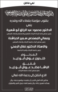 الراي نيوز - جامعة الزرقاء تنعى المرحوم خلدون ابو زيد