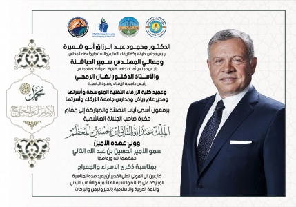 جامعة الزرقاء تهنئ جلالة الملك بلإسراء والمعراج