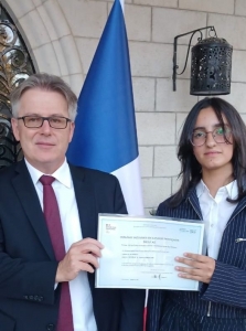 السفير الفرنسي يكرم الطالبة لمار الراميني لتفوقها في امتحان اللغة الفرنسية المدرسي