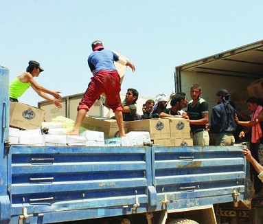 عمليات توزيع المواد الغذائية على الأسر السورية بناء على الحاجة الفعلية لهذه الاسر.