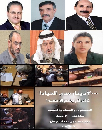 هالة من العواصف البركانية تحمل في موجاتها غضب عبر عنه الشارع الاردني ازاء القرار الاخير الذي صوت عليه مجلس النواب والاعيان يقتضي بمنح النواب رواتب تقاعدية مدى الحياه ، حيث استهجن المواطنون معبرين بقولهم أن قرار النواب لا يتماشى ومصلحة الدولة.