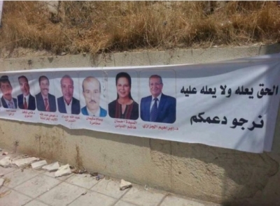 تداول ناشطون على شبكات التواصل الاجتماعي صورة يافطة انتخابية معلقة لإحدى القوائم في البلقاء والتي كتبت بطريقة الخطأ فبدل ان تكتب "الحق يعلو ولا يعلى عليه" كتبت بهذا الشكل "الحق يعله ولا يعله عليه" القائمة التي يقودها محامٍ و كريمة وزير ونائب سابق في البرلمان بالإضافة لـ 3 أشخاص حاصلين على درجة الدكتوراه.