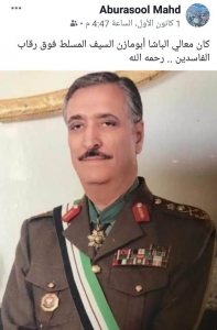 كان معالي الفريق أول المتقاعد مصطفى القيسي/أبو مازن رحمه الله السيف المسلط فوق رقاب الفاسدين .
