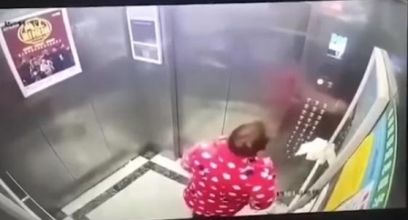 ورصدت كاميرات المراقبة في إحدى العمارات السكنية، سيدة كبيرة بالسن، تقوم بالبصق على أزرار المصعد، فيما يصعد أخران معها، يضغطان على الأزرار، وقد كررت ذات التصرف مرتين.