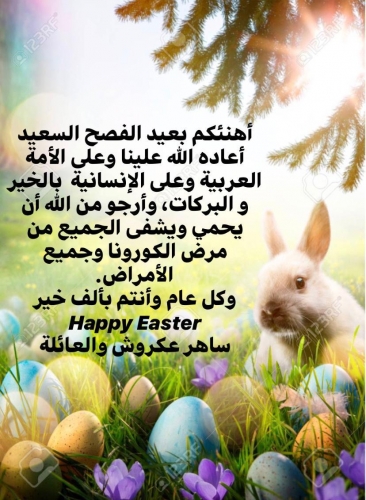 قدم رجل الاعمال ساهر عكروش تهنئة بمناسبة عيد الفصح المجيد للامة العربية واليكم ما كتب :
