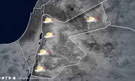 وترتفع قليلا درجات الحرارة لكن تبقى اقل من معدلاتها في مثل هذا الوقت من العام، ويسود طقس بارد نسبيا الى لطيف في الجبال و معتدل ربيعي في الاغوار و البحر الميت و العقبة، بينما يصبح الطقس بارد ليلا.