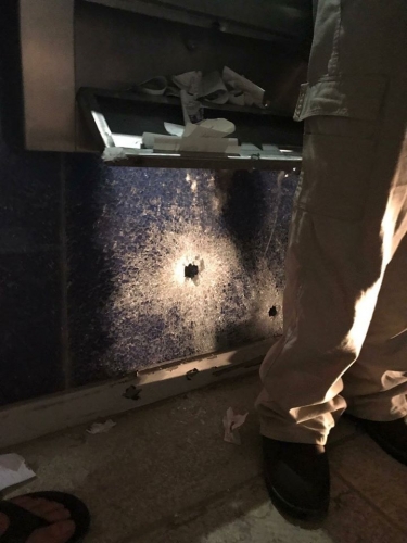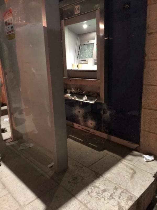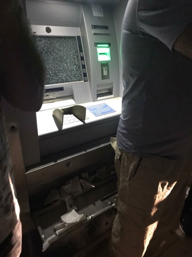 وأفاد شهود عيان أن ملثمين أطلقوا النيران على الصراف الآلي وكتبوا عبارة (أسرانا خط أحمر ) ما أدى إلى تعطل شاشة الصراف بالكامل.