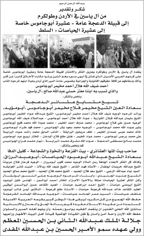 شكر من آل ياسين الى عشيرتي ابو جاموس والحياصات