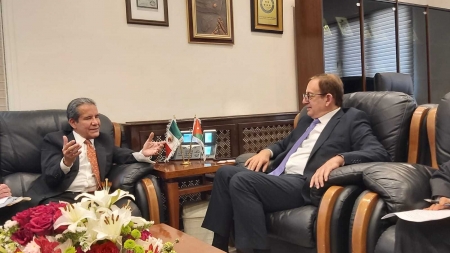 بحث رئيس هيئة تنظيم الطيران المدني، الكابتن هيثم مستو مع السفير المكسيكي في عمان روبيرتو رودريغيز هرنانديز، سبل تعزيز التعاون بين البلدين في مجالات الطيران المدني.