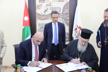 الراي نيوز - وقعت هيئة تنشيط السياحة الأردنية وكنيسة اليونان الممثلة في المجمع المقدس، في موقع المغطس، اليوم الاحد، اتفاقية "مشروع بروتوكول تعاون"، في مجالات السياحة والثقافة، بحضور وزير السياحة والآثار رئيس مجلس إدارة هيئة تنشيط السياحة نايف حميدي الفايز.