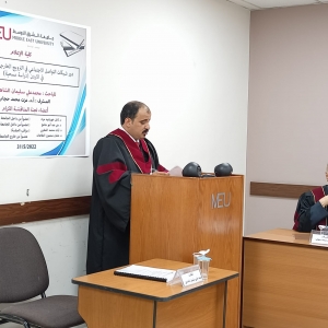 د.منى عيد ابو جامع عضوا من داخل الجامعة , ومن جامعة الزرقاء د. عثمان منصور الطاهات عضوا خارجيا , د.ايات محمد المغربي مراقبا للجلسة.
