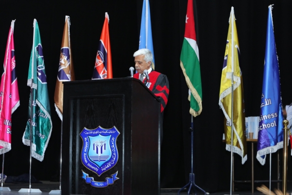 وأشار الى أن جامعة عمان الأهلية والتي تأسست بمبادرة جريئة وحكيمة من المرحوم الدكتور احمد الحوراني، والذي كان يحلم بنقلة نوعية في مجال التعليم العالي، فإن الجامعة كانت وستبقى تحمل فكراً نيراً أضاء بحكمة مسيرة كل من التحق بها من العلماء والأكاديميين والطلبة، مؤكداً بأن الجامعة غدت صرحاً علمياً متميزاً اكتسب الثقة والاحترام والتقدير محلياً وعربياً ودولياً بفضل المستوى المتميز لخريجيها فأصبح منهم القادة والعلماء والخبراء في شتى القطاعات.