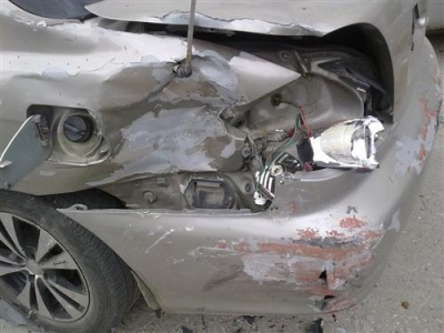 والتُقطت صور تبين حجم الاضرار الجسيمة التي اصابت السيارتين وحطمت زجاج النوافذ والابواب والهيكل الخارجي.