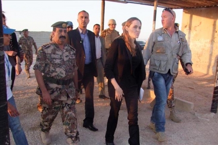 الراي نيوز - زارت المبعوث الخاص للمفوض السامي لشؤون اللاجئين انجلينا جولي مساء الثلاثاء واجهة حرس الحدود الشمالية حيث قامت بجولة في احد مواقع الايواء المتقدمة التي اعدتها قوات حرس الحدود، والتقت عددا من اسر اللاجئين السوريين واستمعت الى معاناتهم الكبيرة التي يواجهونها حتى يصلوا الى نقاط العبور على الحدود الاردنية السورية.