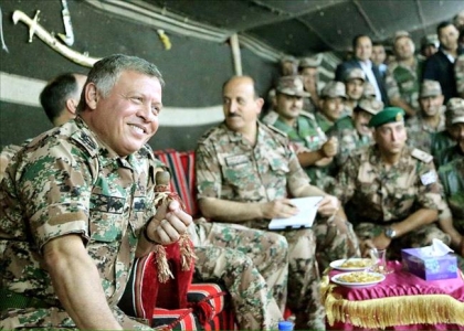 تناول القائد الأعلى للقوات المسلحة الملك عبدالله الثاني السبت طعام الإفطار على الواجهة الحدودية الشمالية برفقة قوات حرس الحدود وقائد الجيش والأمير فيصل بن الحسين.