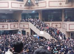 من قصر العدل حرق العلم الاسرائيلي والمعتصمون : الموت للكيان الصهيوني "صور"