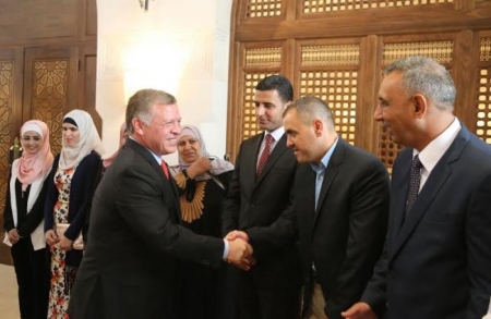 جلالة الملك عبدالله الثاني، القائد الأعلى للقوات المسلحة، يستقبل النقيب فيصل العدوان والرقيب أحمد العدوان، في قصر الحسينية.