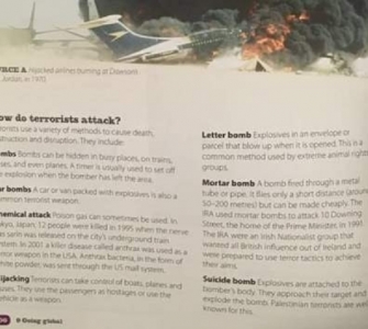 إنها تسيء للشعب الفلسطيني وقضيته٬ وُتدرس في فروع إحدى المدارس الخاصة في