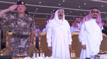 تابع جلالة الملك عبدالله الثاني في السعودية الى جانب عدد من قادة الدول العربية والاجنبية وبحضور الملك سلمان بن عبدالعزيز وولي عهد محمد بن سلمان فعاليات ختام تمرين درع الخليج المشترك1 في السعودية.