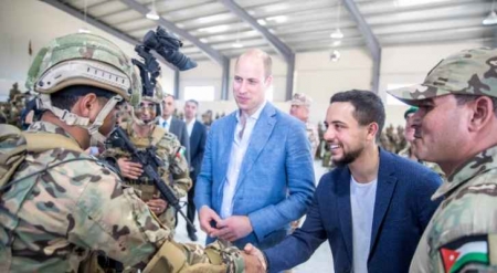 زار نائب جلالة الملك، سمو الأمير الحسين بن عبدالله الثاني ولي العهد، يرافقه سمو الأمير ويليام دوق كامبردج، الاثنين، كتيبة رد الفعل السريع /81، إحدى كتائب لواء رد الفعل السريع بموقعها الجديد في المنطقة العسكرية الشمالية.