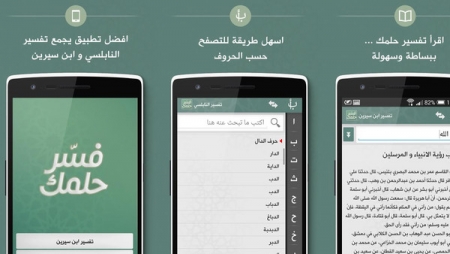 بعد تشغيل التطبيق، يُمكن استعراض التفسير حسب الترتيب الأبجدي، أو يُمكن اختيار مُحرك البحث لإيجاد تفسير حسب العنوان أو حسب المحتوى، وما يُميّز التطبيق هو الجمع بين تفسير النابلسي وابن سيرين. - البوابة العربية للأخبار التقنية