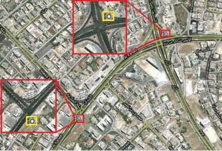 وأضاف الفاعوري أن الكاميرات التي تم توزيعها على الجزر الوسطية والاشارات الضوئية تمتاز بتصويرها لستة مسارب وبالاتجاهين .