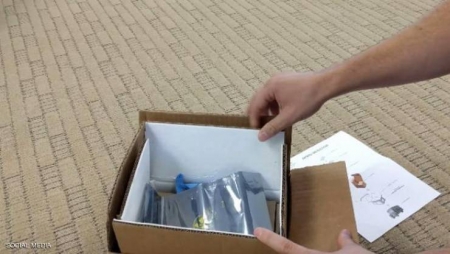 وأظهر تسجيل مصور عبر يوتيوب نشره موقع لأخبار البرمجيات الثلاثاء، أدوات تشمل علبة مضادة للاحتراق عليها تحذير من النقل على الطائرات وقفازات زرقاء للامساك بالجهاز.
