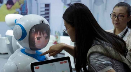 وجعلت الصين من الذكاء الاصطناعي إحدى أولوياتها في خطتها الطموحة للتطور التقني «صنع في الصين 2025». وقد كشف عن أول روبوت صيني قادر على تبادل الأحاديث على نطاق بسيط في 2017 خلال معرض مستهلكي الالكترونيات في مدينة لاس فيغاس الأميركية.